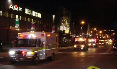 A funeral cortege for New York Fire Dept. Capt. Terence Hatton leaves